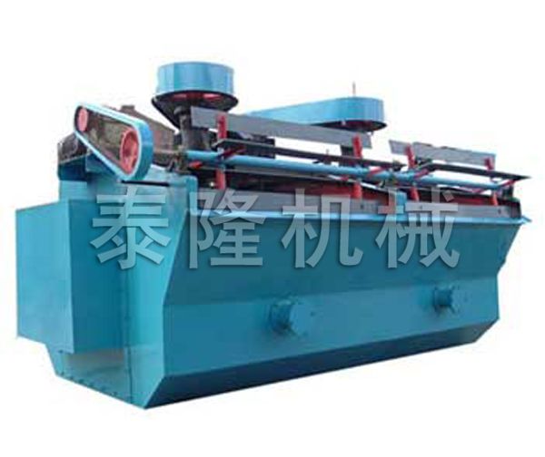 浮選機適用于有色黑色金屬的選別,還可用于非金屬如:煤瑩石、滑石的選別。該浮選機由電動機三角帶傳動帶動葉輪旋轉(zhuǎn),產(chǎn)生離心作用形成負壓,一方面吸入充足的空氣與礦漿混合,一方面攪拌礦漿與藥物混合,同時細化泡沫,使礦物粘合泡沫之上,浮到礦漿面再形成礦化泡沫。調(diào)節(jié)閘板高度,控制液面,使有用泡沫被刮板刮出。  浮選機主要用于選別銅、鋅、鉛、鎳、金等有色金屬,也可以用于黑色金屬和非金屬的粗選和精選。  特點:  1.分選精度高,精煤灰分低,產(chǎn)率高,尤其是對難選煤更顯其優(yōu)勢,精煤灰分可比常規(guī)機械攪拌式浮選機降低1~2%。  2.處理量大,單位體積處理量為常規(guī)浮選機的2~3倍。  3.運行成本低,與常規(guī)機械攪拌式浮選機比較能節(jié)電1/3~1/2。  4.浮選機槽體內(nèi)無運轉(zhuǎn)部件,易于維護檢修。  5.對煤質(zhì)的適應性強  6.占地面積小,節(jié)省基建投資。相同處理量時占地面積只有機械攪拌式的40~60%。  7.操作簡單,自動化程度高。  8.重量輕。