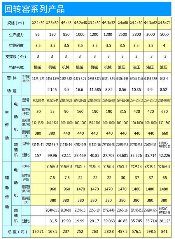水泥回轉窯是水泥熟料干法和濕法生產線的主要設備,主要用于煅燒水泥熟料,分干法生產水泥窯和濕法生產水泥窯兩大類。廣泛用于冶金、化工、建筑耐火材料、環保等工業。結構堅固、運轉平穩、出窯產品質量高,并可為用戶提供**的高效立筒預熱器、五級旋風預熱器。水泥回轉窯正常運轉時,由主傳動電動機經主減速器向該開式齒輪裝置傳遞動力,驅動回轉窯。物料從窯尾(筒體的**)進入窯內煅燒。由于筒體的傾斜和緩慢的回轉作用,物料既沿圓周方向翻滾又沿軸向(從**向低端)移動 ,生成熟料經窯頭罩進入冷卻機冷卻。燃料由窯頭噴入窯內,燃燒產生的廢氣與物料進行交換后,由窯尾導出。適用于水泥、水泥磚、耐火爐料、黏土、膨潤土等物料。