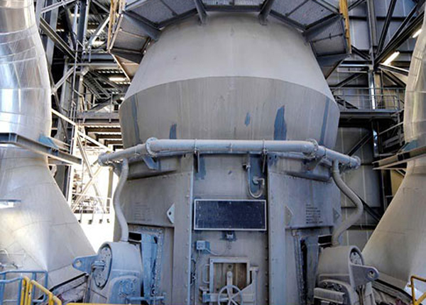 料床,物料同時受到磨盤上多個磨輥的碾壓,并被粉碎。在離心力的連續驅動下物料不斷向磨盤外緣運動,離開磨盤的物料遇到通過風環進入磨內的熱氣體并隨之上升,經磨機中部殼體進入到分離器中,在此過程中物料與熱氣體進行了充分的熱交換,水分迅速被蒸發。選粉機控制著輥磨出口的成品細度,大于規定尺寸的顆粒被分離,并落回至磨盤,滿足細度要求的物料通過選分機進入成品倉。