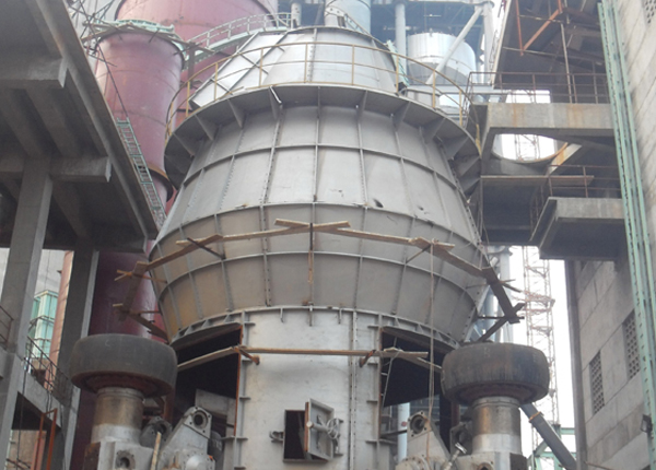 料床,物料同時受到磨盤上多個磨輥的碾壓,并被粉碎。在離心力的連續驅動下物料不斷向磨盤外緣運動,離開磨盤的物料遇到通過風環進入磨內的熱氣體并隨之上升,經磨機中部殼體進入到分離器中,在此過程中物料與熱氣體進行了充分的熱交換,水分迅速被蒸發。選粉機控制著輥磨出口的成品細度,大于規定尺寸的顆粒被分離,并落回至磨盤,滿足細度要求的物料通過選分機進入成品倉。
