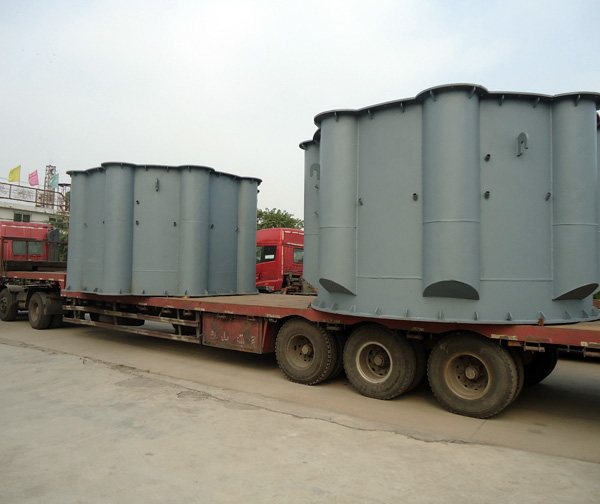 1、托擋輪支承裝置和托輪支承裝置的機(jī)架整體焊接完畢,進(jìn)行振動時效處理,消除焊接應(yīng)力后,用大型立式車床和鏜銑床進(jìn)行一體化加工制造,保證了各部分的加工、配合精度和形位公差,有效提高了整機(jī)的安裝精度和可靠性;